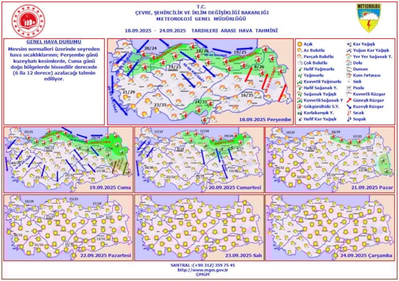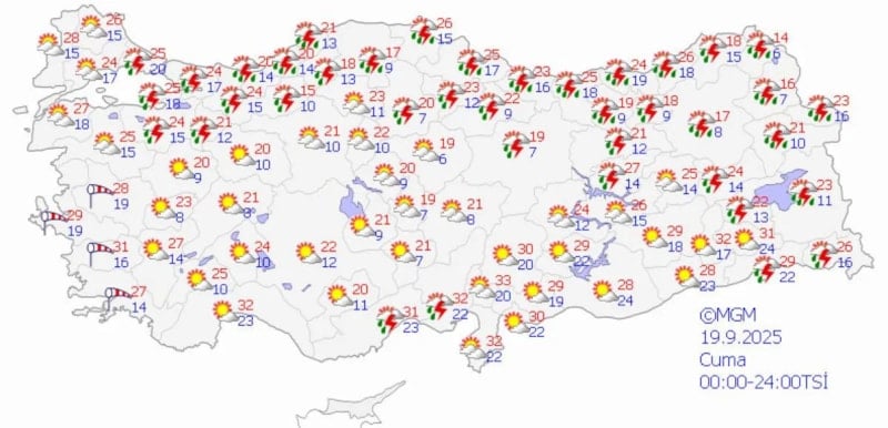 19 Eylül Cuma Günü Hava Tahmin Raporu