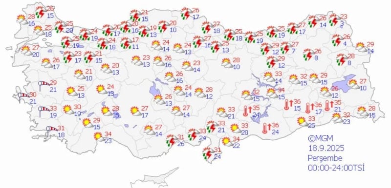 18 Eylül Perşembe Günü Hava Tahmin Raporu