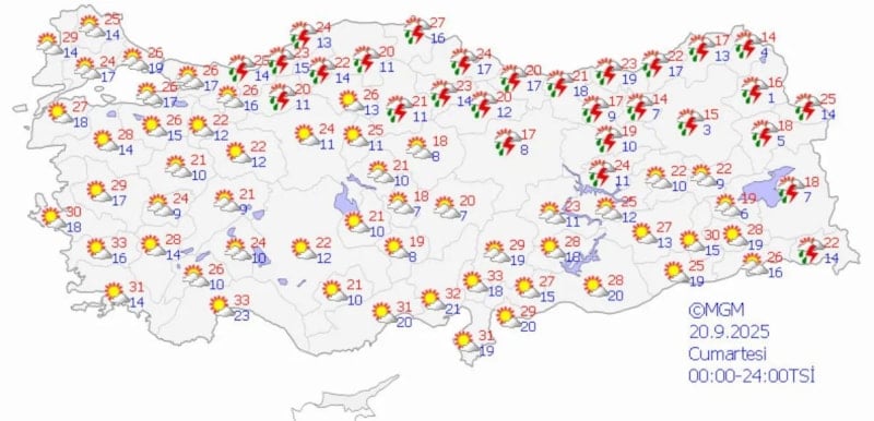 20 Eylül Cumartesi Günü Hava Tahmin Raporu