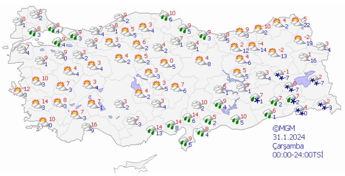 Şu anda İstanbul’da aralıklarla karla karışık yağmur görüyoruz. Salı günü öğle saatlerinden sonra ve çarşamba günü için İstanbul’da yağmur bekliyoruz. Perşembe günü için yağış yok. Cuma günü için yağmurlu kısa süreli bir yağış var. Hafta sonu ise yine İstanbul’da parçalı az bulutlu bir hava beklentimiz var. Sıcaklık İstanbul’da da kademeli olarak yükselecek. Salı ve çarşamba günü 7-8 derece olan sıcaklıklar, hafta sonunda 10 derece ve üzerine çıkacak.