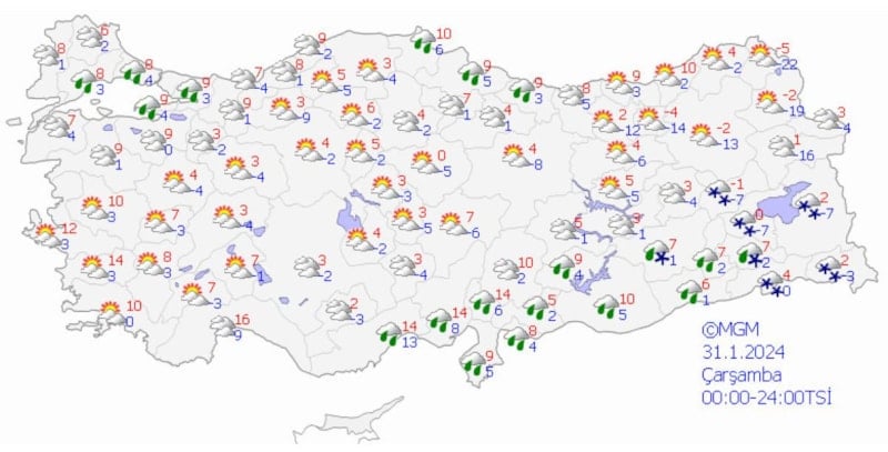 Onun dışında yağış beklentimiz yok. Bu yağışlar özellikle Marmara'da, İstanbul da dahil olmak üzere kuvvetli rüzgarla, poyrazla birlikte karla karışık yağmur ve kar yağışı şeklinde görülecek. Salı günü öğle saatlerinden itibaren Marmara Bölgesi'nde yağışın yağmura çevirmesini bekliyoruz. Çarşamba günü de yağmur şeklinde Marmara Bölgesi'nde etkili olacak. Güney bölgelerimizde ise Orta ve Doğu Akdeniz ile Güneydoğu Anadolu Bölgesi'nde, bir de Doğu Anadolu’nun güneydoğusunda 2 gün daha yağış bekliyoruz. Salı ve çarşamba günü için yağışlar devam edecek. Bu yağışlar da yine güney kıyılarımızda yağmur, diğer yerlerde karla karışık yağmur ve kar yağışı şeklinde görülecek. Perşembe günü için yurt genelinde sadece Orta Karadeniz’de hafif bir yağış beklentimiz var. Onun dışında bir yağış beklemiyoruz. Cuma günü için Marmara’nın doğusu ve Batı Karadeniz yağışlı geçecek. Onun dışında yurt genelinde yağış yok. Cumartesi için Doğu Karadeniz’de yağış var. Pazar günü için de sadece Doğu Anadolu’nun güneydoğusunda yağış bekliyoruz.