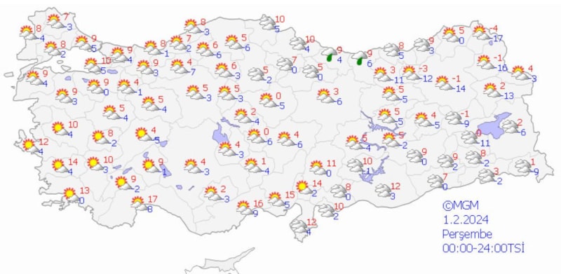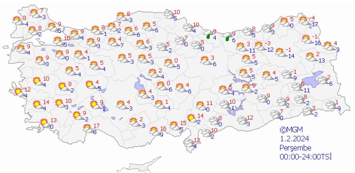 Hava önce parçalı çok bulutlu olacak. Perşembe gününden itibaren parçalı az bulutlu bir hava bekliyoruz. Sıcaklık Ankara’da şu anda mevsim normallerinin civarında. Kar yağışı için sıcaklık uygun ancak yağış beklemediğimiz için kar yağışı Ankara’da görünmüyor. Hafta sonundan itibaren ise sıcaklıklar mevsim normallerinin oldukça üzerine çıkacak. 10 derecelerin üzerini göreceğiz.