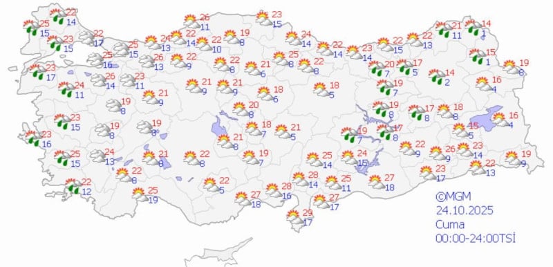 Meteoroloji Genel Müdürlüğü'nden (MGM) alınan tahminlere göre, hava sıcaklıklarının, kuzey ve iç kesimlerde azalması bekleniyor.