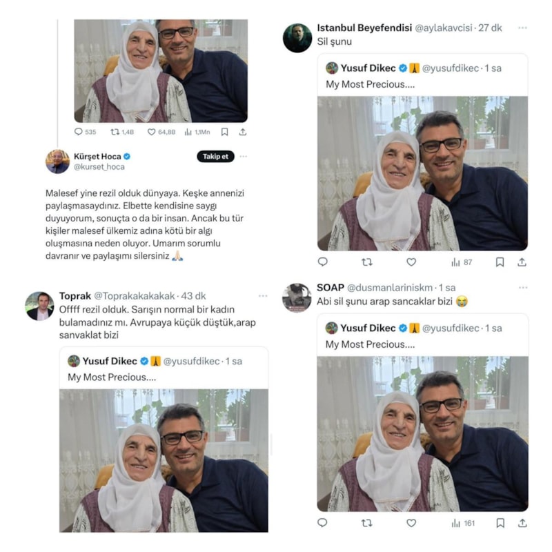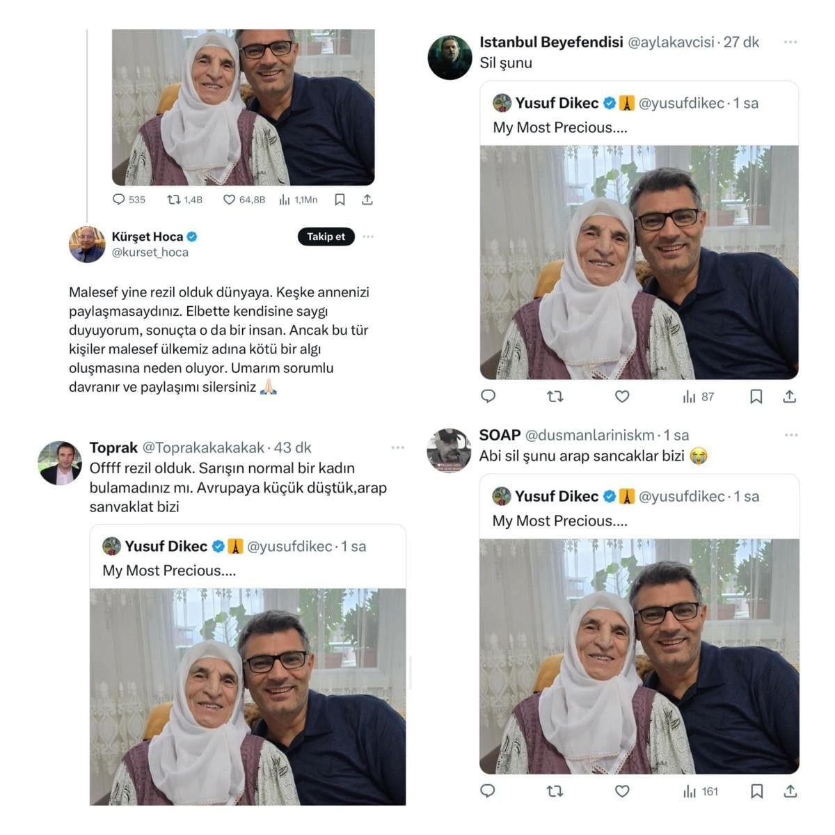 Bir sosyal medya medya kullanıcısı fotoğrafın altına, "Maalesef rezil olduk dünyaya. Keşke annenizi paylaşmasaydınız" yorumunu yaparak başörtüsünden rahatsız olduğunu dile getirdi.