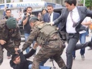 Başbakanlık müşavirinden protestocuya tekme İZLE