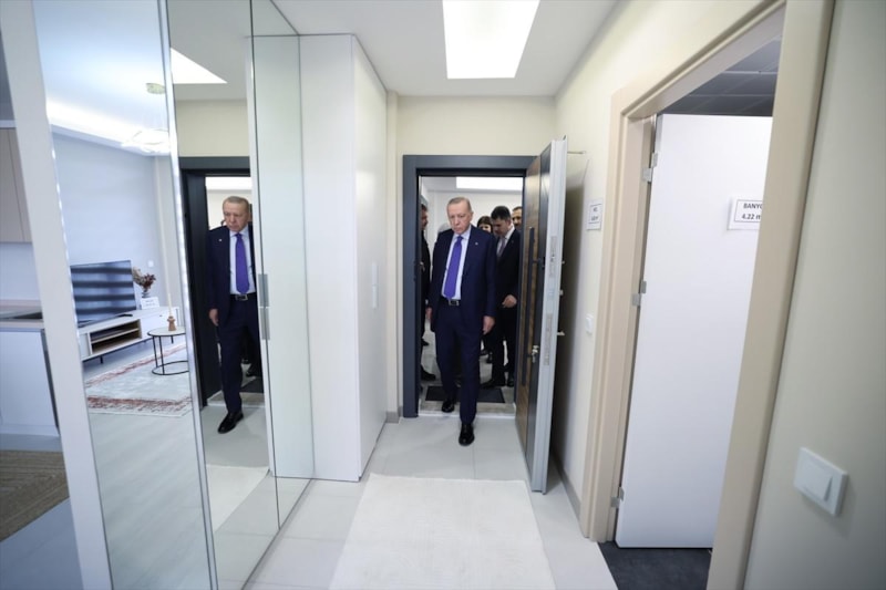 81 ilde 500 bin sosyal konut inşa edilmesi hedefleyen "Ev Sahibi Türkiye: Yüzyılın Konut Projesi" ayrıntılarını duyuran Cumhurbaşkanı Erdoğan, tören alanında bulunan örnek daireleri gezdi.