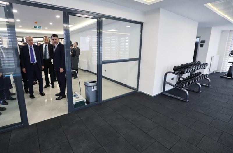 Daireleri inceleyen Cumhurbaşkanı Erdoğan'a; Çevre, Şehircilik ve İklim Değişikliği Bakanı Murat Kurum eşlik etti.