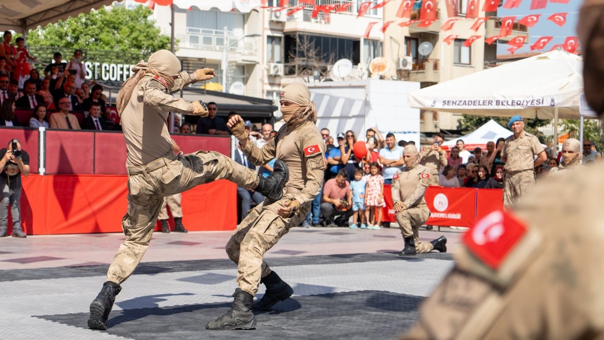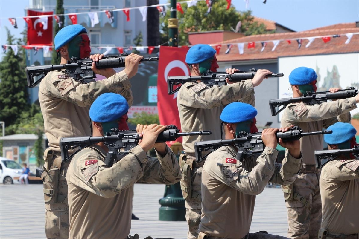 Manisa’da 30 Ağustos Zaferi’nin 102. yılı kutlamalarında Kırkağaç Jandarma Komando Eğitim Merkez Komutanlığı komandolarının gösterileri, izleyenlerden büyük alkış aldı.
