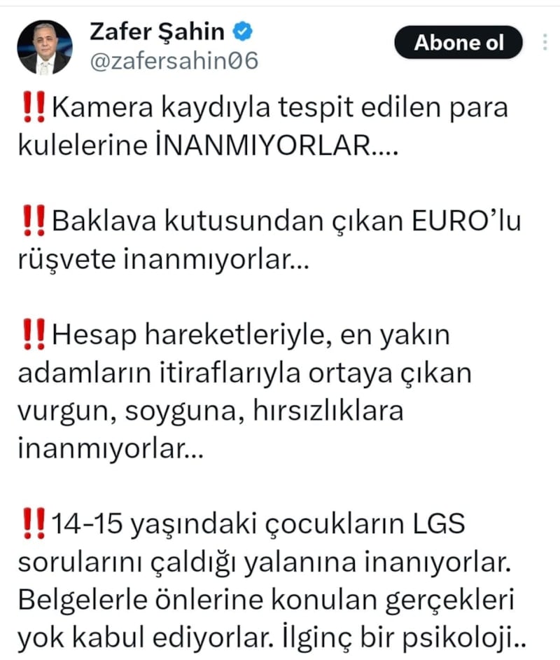 14-15 yaşındaki çocukların LGS sorularını çaldığı yalanına inanıyorlar. Belgelerle önlerine konulan gerçekleri yok kabul ediyorlar. İlginç bir psikoloji..