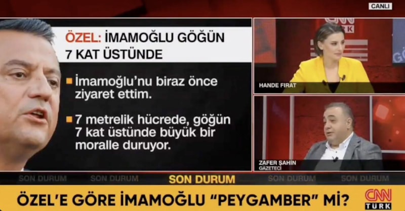 Özgür Özel'in Ekrem İmamoğlu için kullandığı 'göğün 7 kat üzerinde' sözlerini değerlendiren Zafer Şahin, Özel'den bir sonraki açıklamasında İmamoğlu'nu Mesih ilan etmesini beklediğini söyledi.