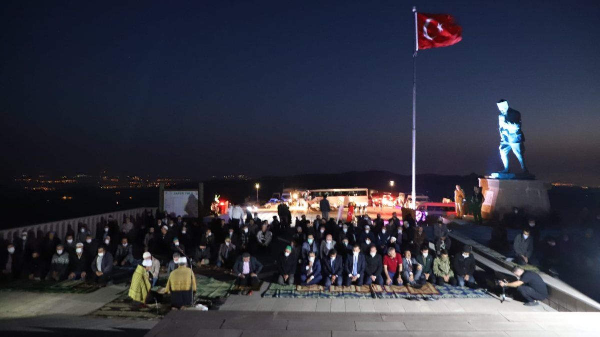 Afyonkarahisar Vali Yardımcısı Mehmet Keklik ve protokol üyelerinin de eşlik ettiği gençler, sabah namazını bölgede yaşayan vatandaşlar ile birlikte Büyük Taarruz’un başladığı Kocatepe’de kıldı.
