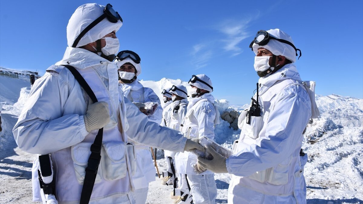 Daha sonra yün çorapları giyen Mehmetçik, çetin kış koşullarının yaşandığı bölgede terör örgütü mensuplarına karşı arazi arama tarama faaliyeti sürdürdü.