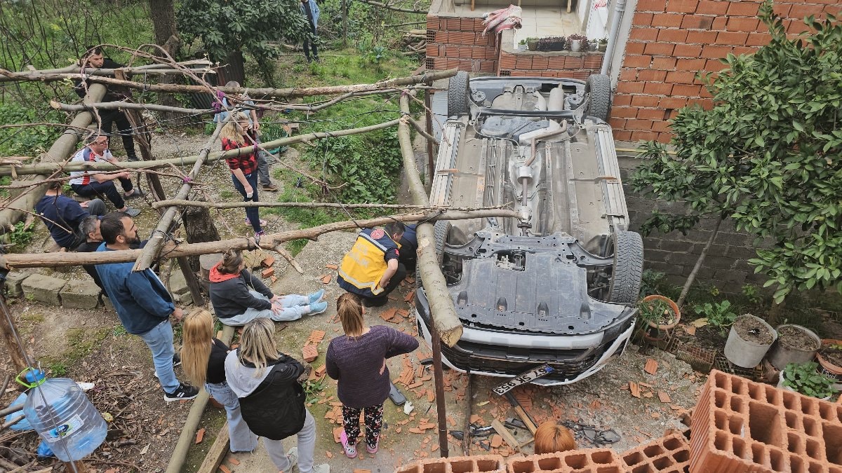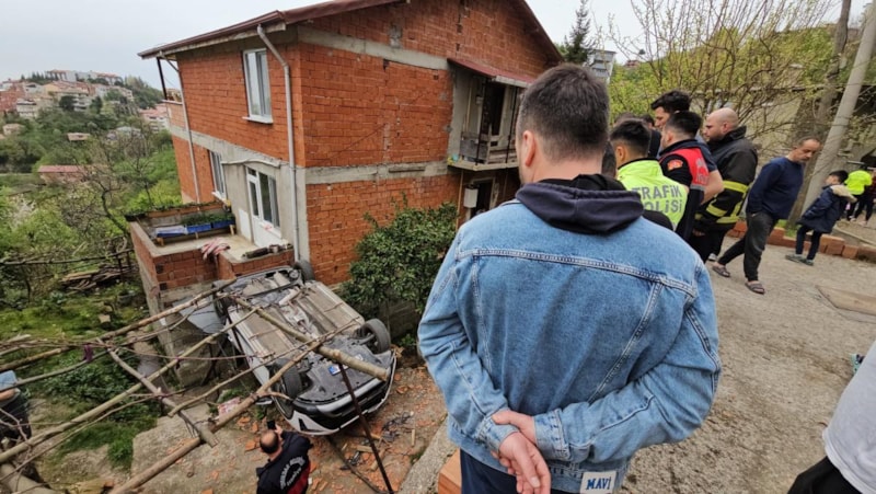 Zonguldak'ta, Kumsal G.'nin park etmeye çalıştığı araç yaklaşık 2 metre yükseklikten düştü.