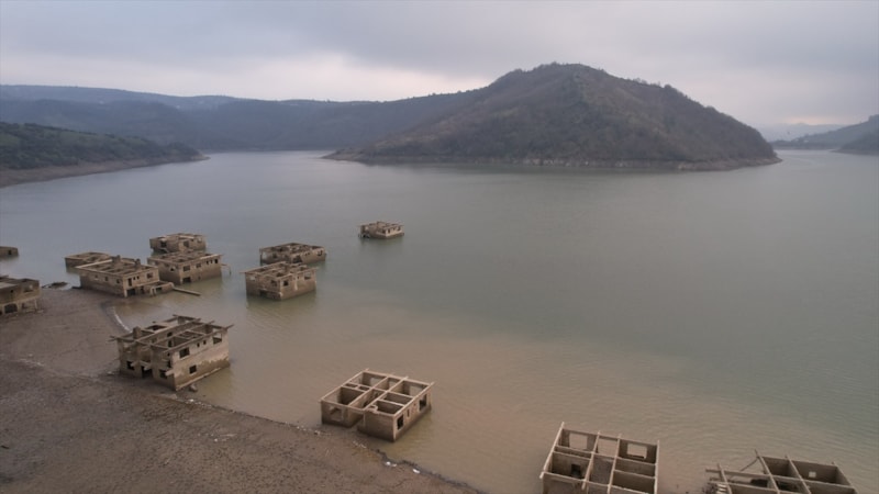 Kuraklık, yıllar önce su altında kalan köyü gün yüzüne çıkardı.