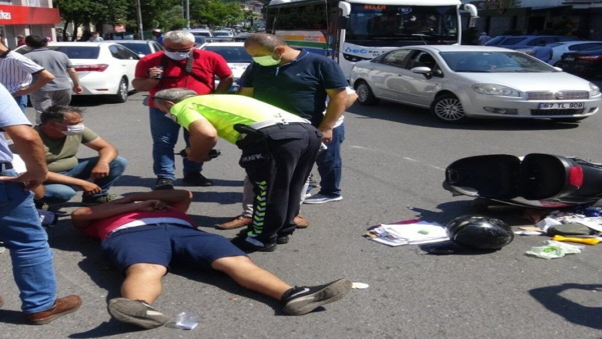 Zonguldak’ın Ereğli ilçesinde yolun karşısına geçmek isteyen kadına motosiklet çarptı. Kazada motosiklet sürücüsü ve çarptığı kadın yaralandı.