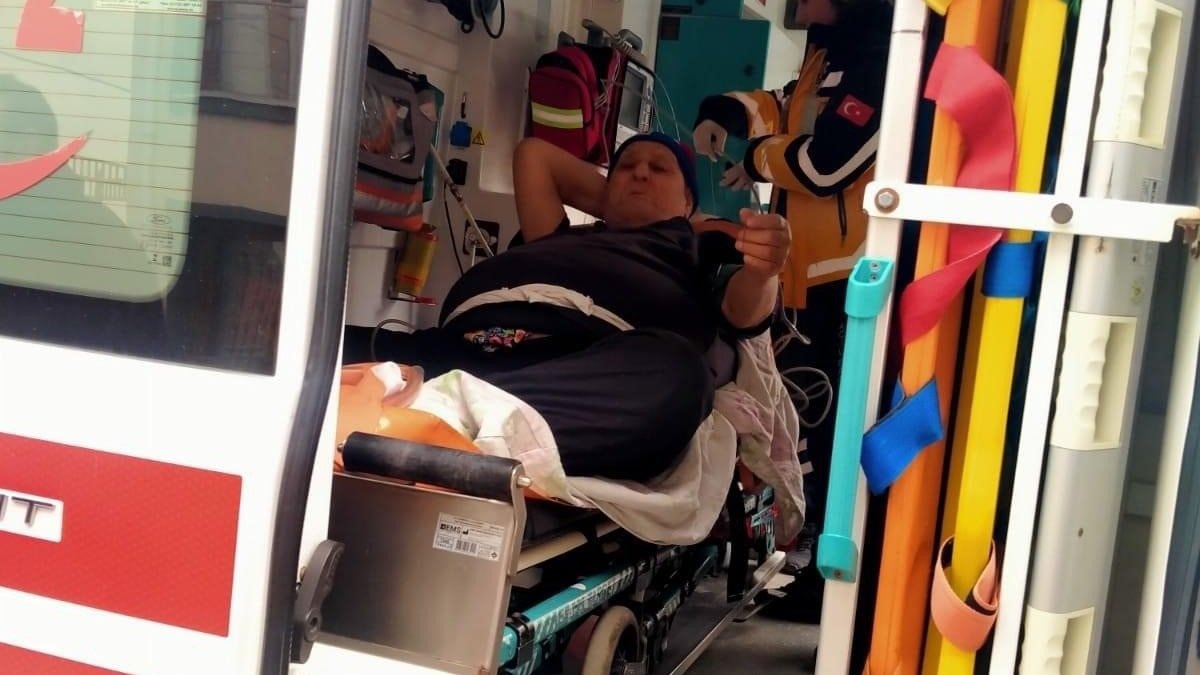 Polis ve sağlık ekiplerinin yardımıyla 75 yaşındaki Halit Tomak, ambulansla hastaneye götürüldü.