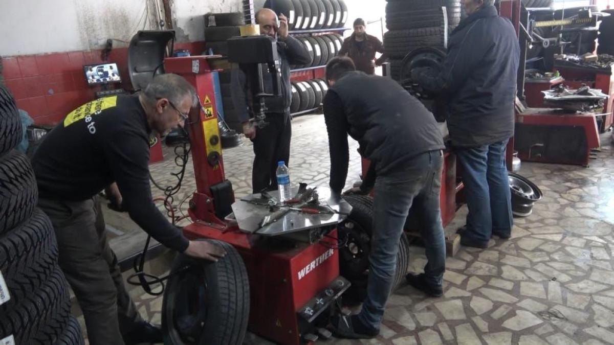 Buzlu, karlı ve sulu yol şartlarında yol tutuş, hızlanma, durma ve viraj alma açısından yaz lastiklerine oranla daha iyi olan kış lastiklerini taktırmak isteyen sürücüler soluğu oto lastikçilerinde aldı.