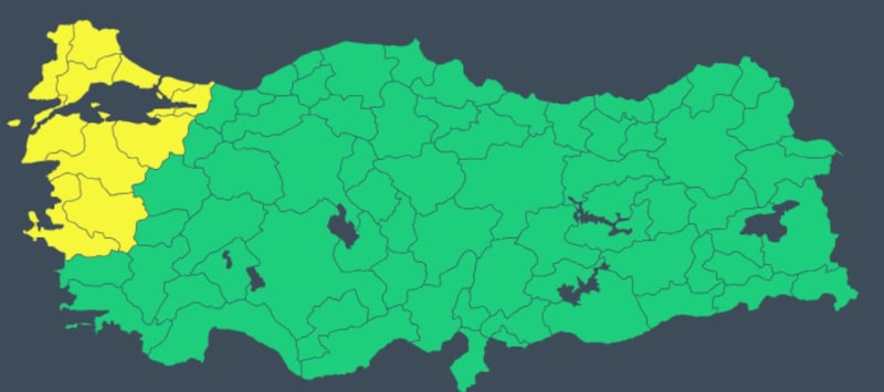 Uyarı verilen iller; Balıkesir, Bursa, Çanakkale, Edirne, İstanbul, İzmir, Kırklareli, Kocaeli, Manisa, Tekirdağ, Yalova olarak sıralandı.
