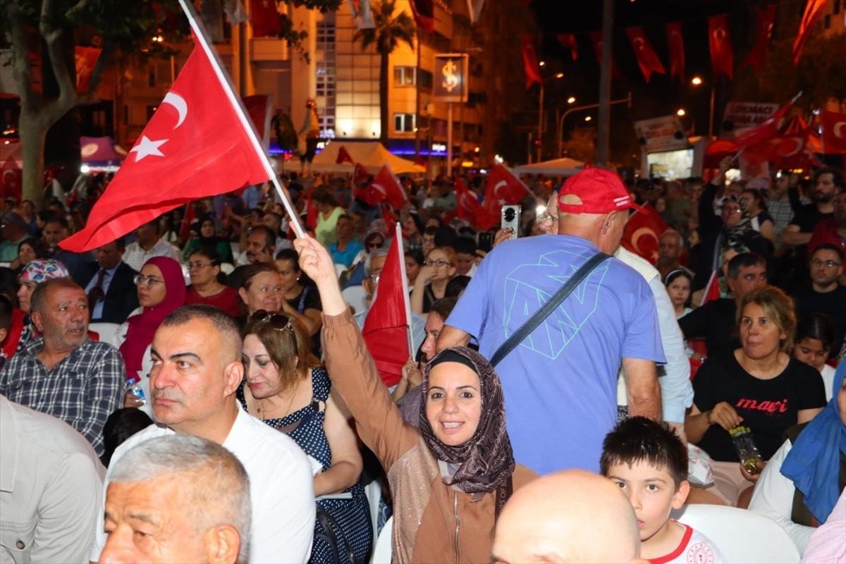 Konuşmanın ardından Adnan Menderes Anadolu İmam Hatip Lisesi öğrencilerince şiir okundu, Aydın Adnan Menderes Üniversitesi (ADÜ) korosu tarafından "kahramanlık" türküleri seslendirildi. Alanı dolduran vatandaşlar da ellerinde Türk bayraklarıyla eşlik etti.