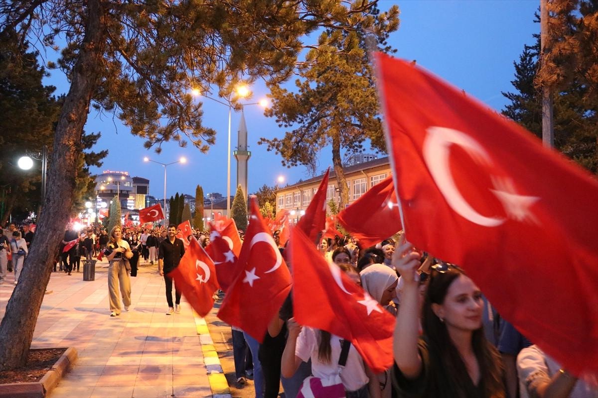 Kayseri'de Kartal Şehitliği'nde ellerinde Türk bayraklarıyla bir araya gelen vatandaşlar, il protokolüyle Cumhuriyet Meydanı'na yürüdü.