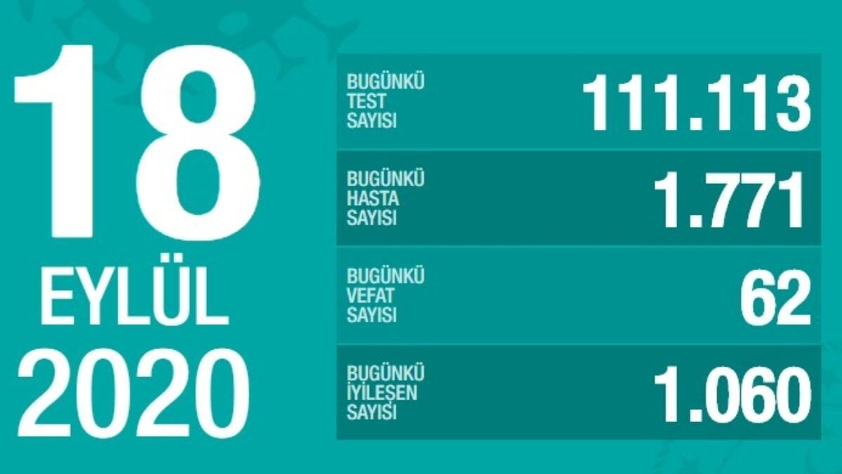 Bakan Koca'nın paylaştığı tabloya göre bugün 1771 yeni vaka tespit edilirken 62 kişi hayatını kaybetti.