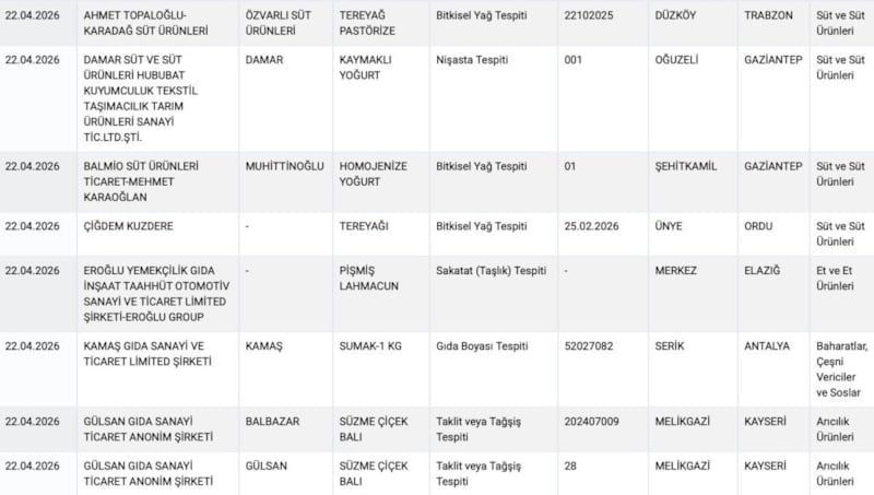 Tarım ve Orman Bakanlığı, Güvensiz Ürün Bilgi Sistemi’ni güncelledi. Bakanlığın yayınladığı listede 2 yoğurt ve 1 tereyağı markası yer aldı. Ürünlerin içinden çıkanlar şaşkınlık yarattı.