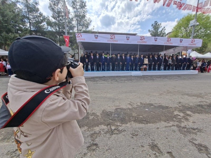 Diyarbakır’da 23 Nisan Ulusal Egemenlik ve Çocuk Bayramı kutlamalarında eline fotoğraf makinesini alan 6 yaşındaki İbrahim Efe Irmak, törenleri adeta bir basın mensubu gibi takip ederek dikkatleri üzerine çekti.