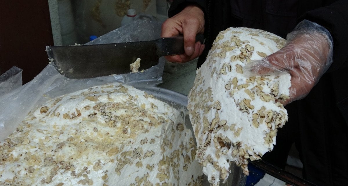 Ordu’da cevizli helva üretimi ve satışını yapan İbrahim Ölmez, odun ateşinde pişirilen, yapımı 3 gün süren tescilli ve coğrafi işaret belgesine sahip Perşembe cevizli helvasının tercih edilen bir lezzet olduğunu söyledi.