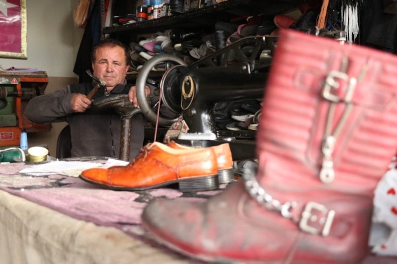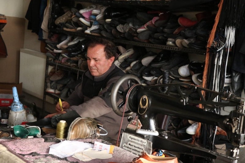 Mesleğine yaklaşık 31 yıldır devam eden Mert, "Ben ayakkabı tamircisiyim, amcadan kalan bir meslek. Severek başladım.