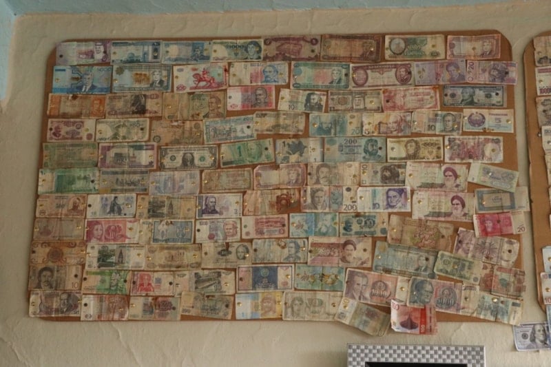 Kıyasettin Mert, aynı zamanda hobi olarak da iş yerinin duvarında yaklaşık 200 ülkenin paralarını biriktirerek koleksiyon yapıyor.