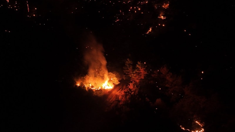 "Mücadele çalışmalarında havadan 3 helikopter, karadan ise orman teşkilatına ait 21 arasöz, 6 su ikmal aracı, 12 ilk müdahale aracı, 10 teknik personel, 127 orman yangın işçisi görev almaktadır. Bunun yanı sıra jandarma ve emniyet güçleri, İl Özel İdare ve belediyelerimize ait iş makineleri, su tankları, itfaiye araçları ile vatandaşlarımıza ait çok sayıda su tankı da çalışmalara katılmaktadır. Yangının enerjisi düşürülmüş olup, tamamen kontrol altına alınması için topyekün mücadele devam etmektedir."