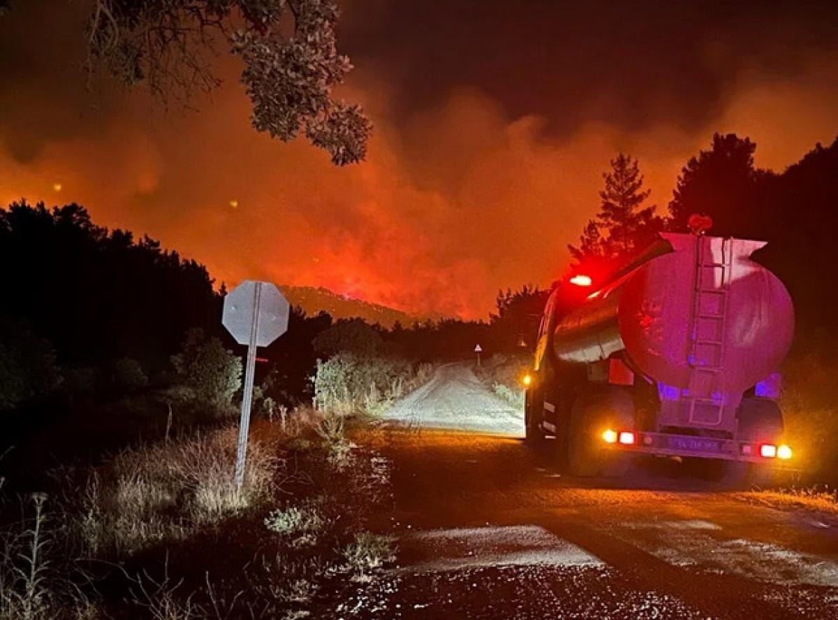 Bölgeye İzmir Orman Bölge Müdürlüğü'ne ait 8 uçak, 2 helikopter, 20 arazöz, 7 su ikmal aracı ve 4 dozer sevk edildi.