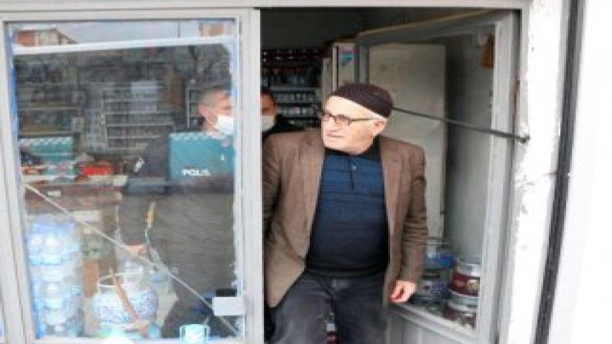 Erzurum'da koronavirüs önlemleri kapsamında dışarı çıkması yasaklanan yaş grubunda olan 66 yaşındaki adam, polis ekipleri tarafından işlettiği bakkal dükkanından alınarak evine götürüldü.