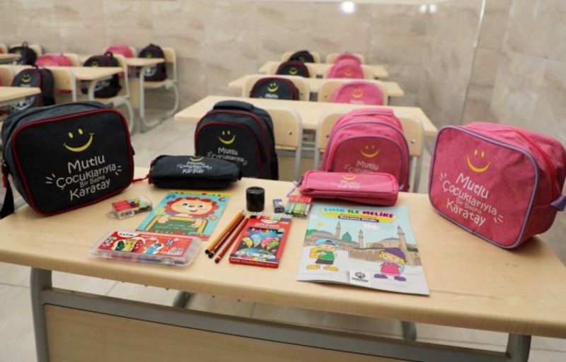 Bu kapsamda ilkokul 1'inci sınıfa başlayacak her öğrenci için okul çantasının yanı sıra kalem seti, kalemlik, silgi, kalemtıraş, beslenme çantası, kuru ve pastel boya setleri, güzel yazı defteri, boyama kitabı ile sayı çubukları ve fasulyelerden oluşan kırtasiye seti hazırlandı.