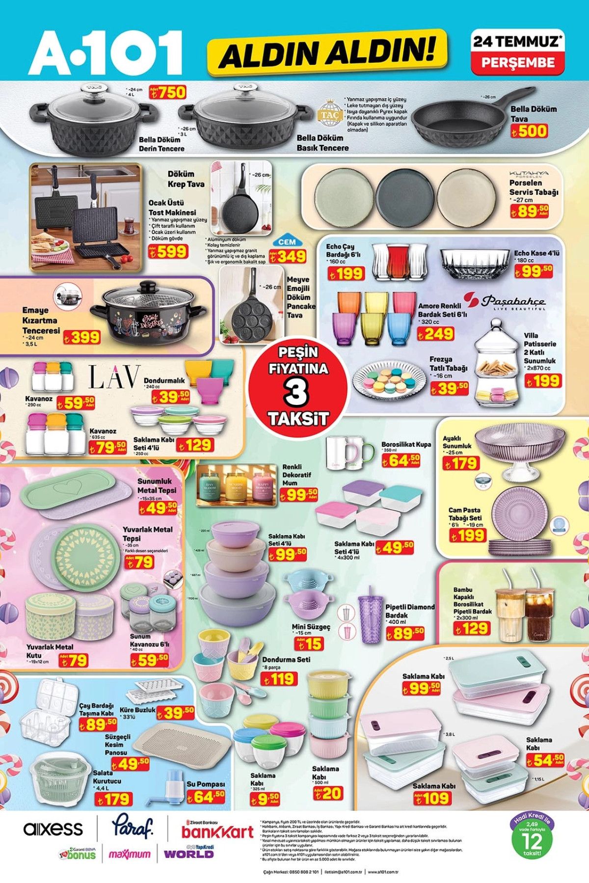 A101, 24 Temmuz 2025 Perşembe günü başlayacak yeni aktüel ürün kampanyası ile müşterilerine yaz sezonuna özel fırsatlar sunuyor.