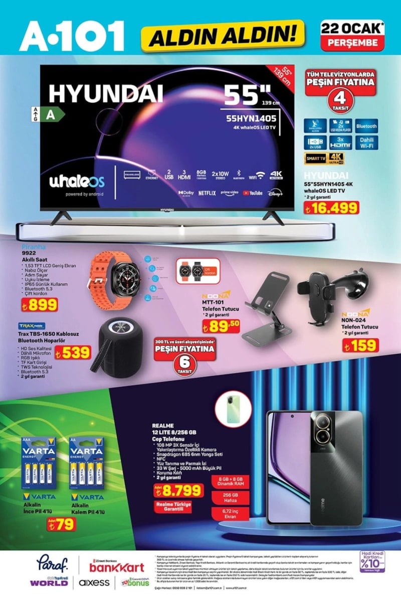 A101, 22 Ocak Perşembe günü geçerli olacak “Aldın Aldın” aktüel kataloğunu yayımladı. Yeni katalogda teknoloji ürünlerinden küçük ev aletlerine, kişisel bakım ürünlerinden mutfak gereçlerine kadar geniş bir ürün yelpazesi yer alıyor. İşte A101 22 Ocak aktüel ürünler...