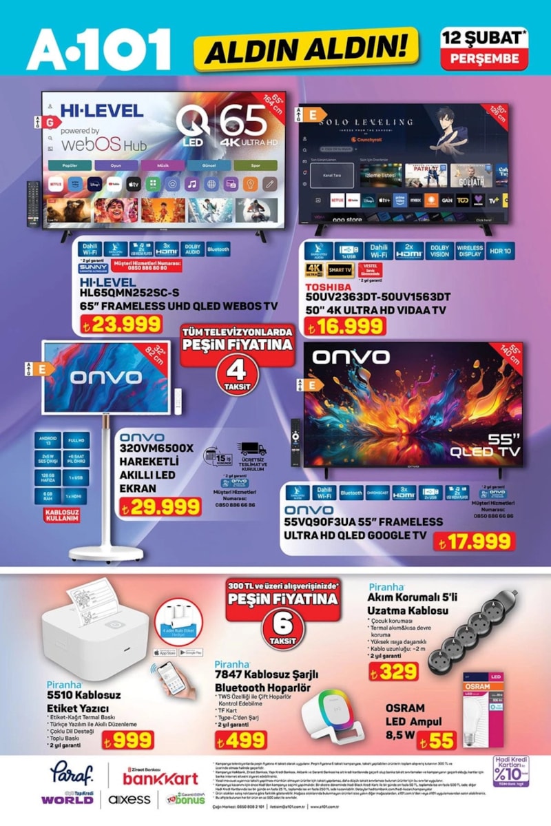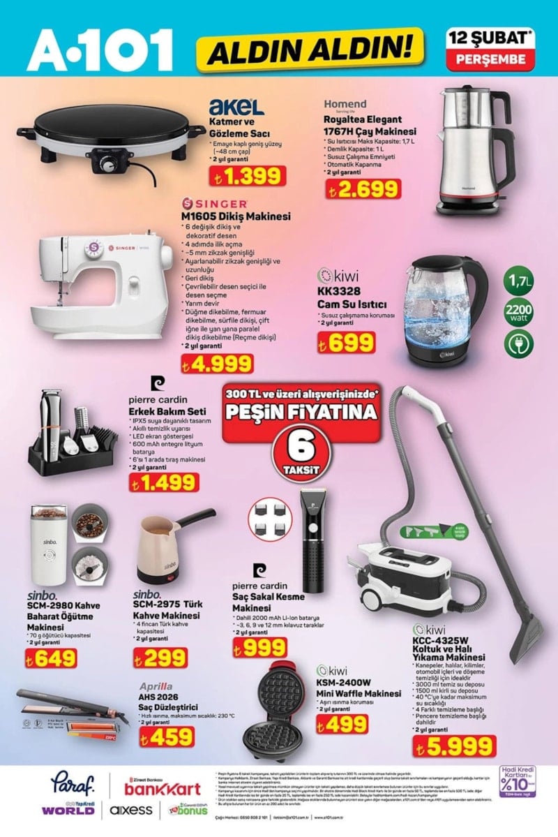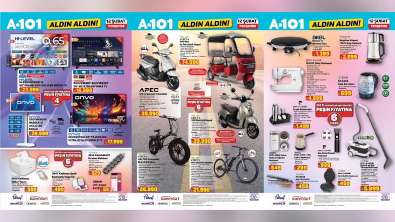 A101’in yeni haftaya özel hazırladığı aktüel ürünler kataloğu, alışveriş severlerin ilgisini çekmeye başladı. 12 Şubat Perşembe günü raflarda yerini alacak indirimli ürünlerde özellikle beyaz eşya ve teknoloji ürünleri öne çıkıyor.