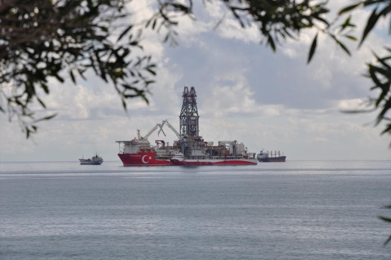 Türkiye'nin hidrokarbon arama çalışmalarına katılan 4. sondaj gemisi Abdülhamid Han, yeni görevi öncesi Mersin'in Taşucu Limanı açıklarına demirledi.