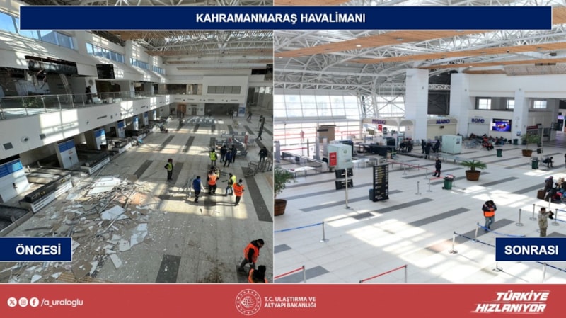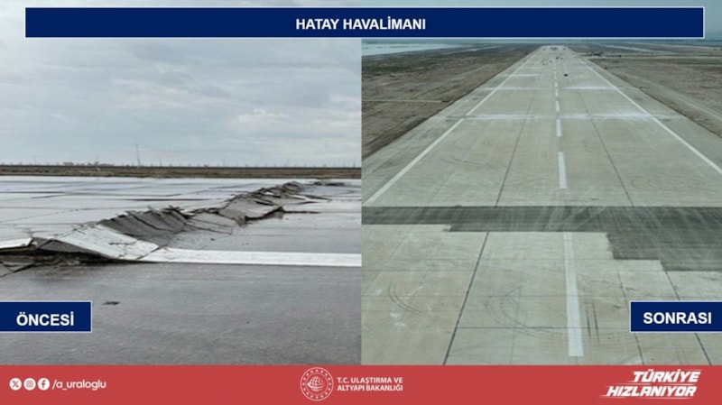 Hatay Havalimanı'nın 3 bin metrelik ana pistinde depremden dolayı ağır hasar oluştuğunu anımsatan Uraloğlu, öncelikle insani yardım ve tahliye uçuşlarının kullanımı için gerekli çalışmaları hızla yaparak pisti kısa sürede hizmete aldıklarını ifade etti.