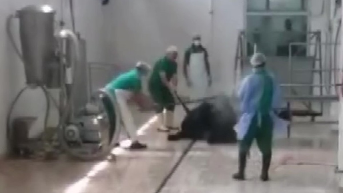 Adana'nın Yüreğir ilçesine bağlı Yenidoğan Mahallesi Girne Bulvarı’ndaki Et ve Süt Kurumu binasına getirilen büyükbaş bir hayvan görevliler tarafından eziyet edilerek öldürüldü.