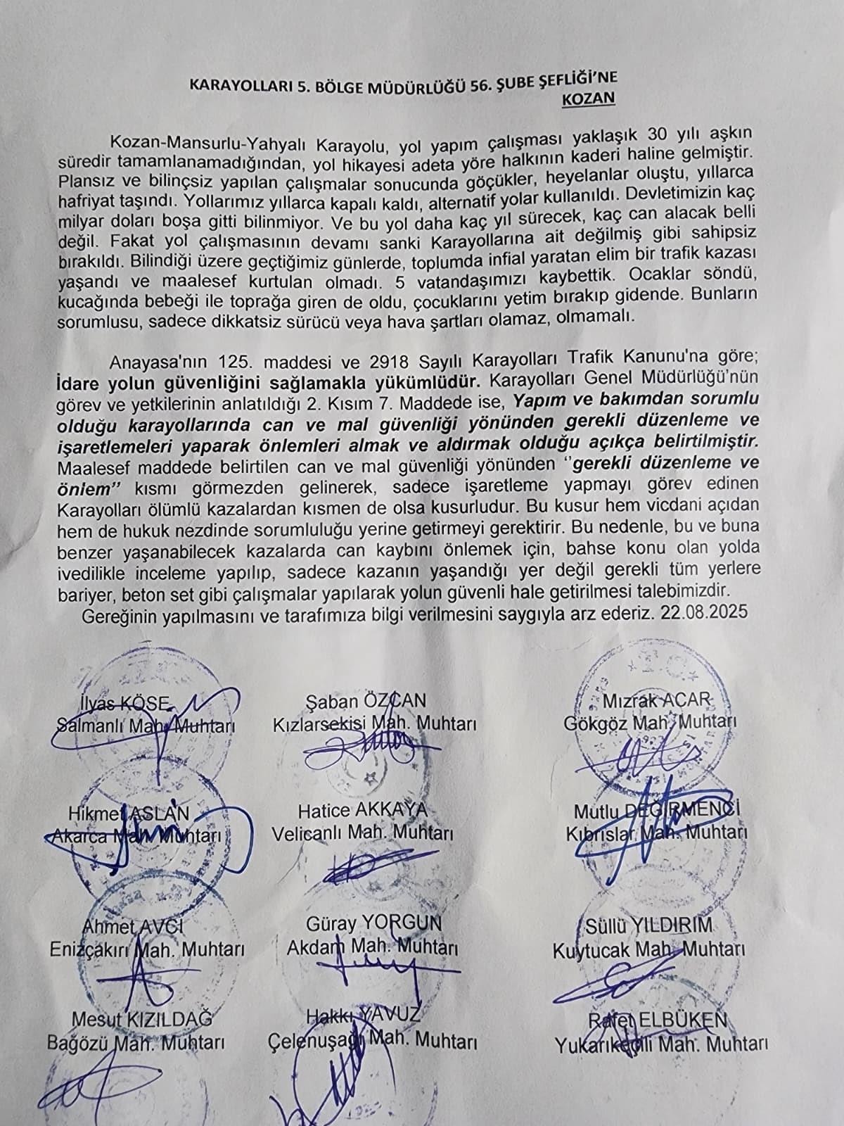Mahallemizde 5 kişi bu yolda hayatını kaybetti. Siyasi bir mesele değil, bir makinenin bir günde düzeltebileceği virajda 5 kişi öldü. Yolun yapılmaması kabul edilemez. Yetkililerin hızla çözüm bulmasını ve bariyer konulmasını istiyoruz