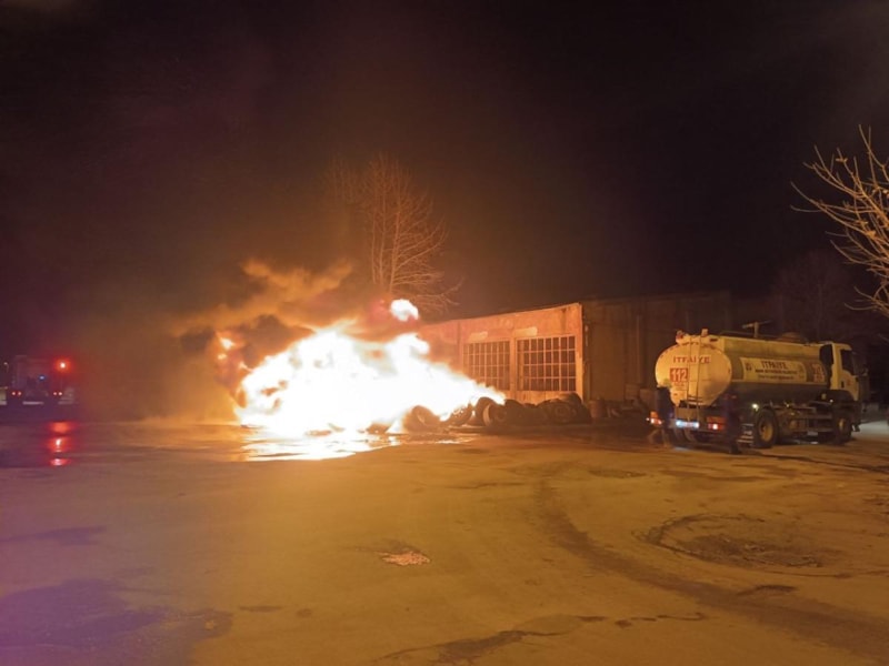 Lastik dükkanında çıkan yangın tamir atölyesine sıçradı