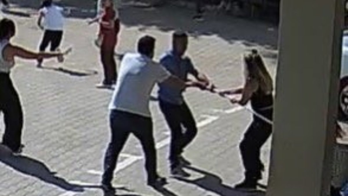 Bunun üzerine okuldaki öğretmenler araya girdi ancak şahıs bu seferde öğretmenlere saldırdı.