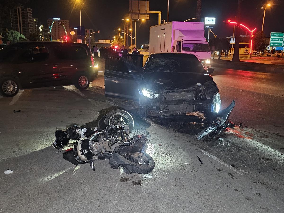 Adana'nın Seyhan ilçesine bağlı Gürselpaşa Mahallesi Öğretmenler Bulvarı'nda, Hasan Yasin'in (58) kullandığı 01 AHH 758 plakalı motosiklet ile Mahmut Ç. idaresindeki 01 AYV 149 plakalı otomobil çarpıştı.