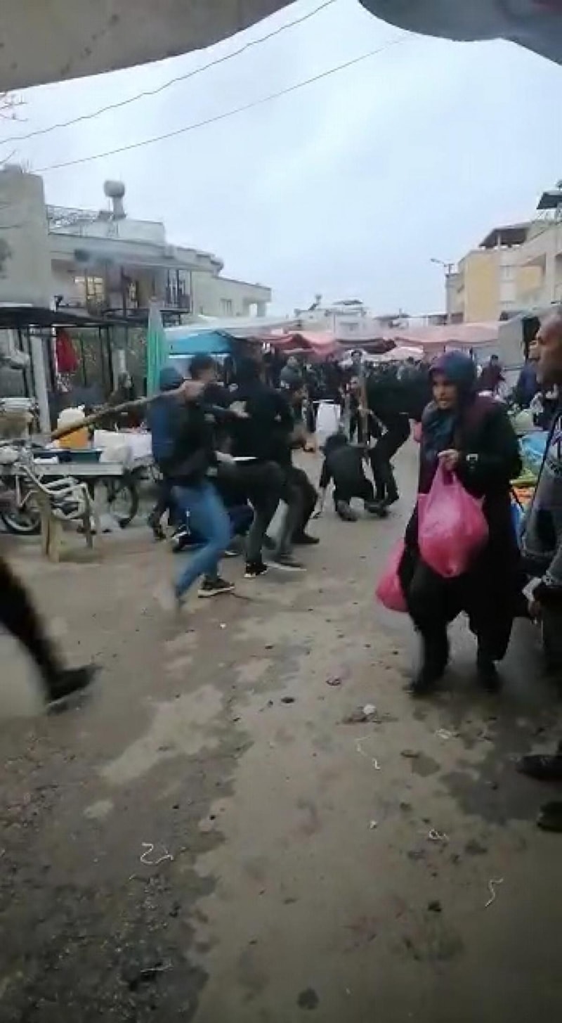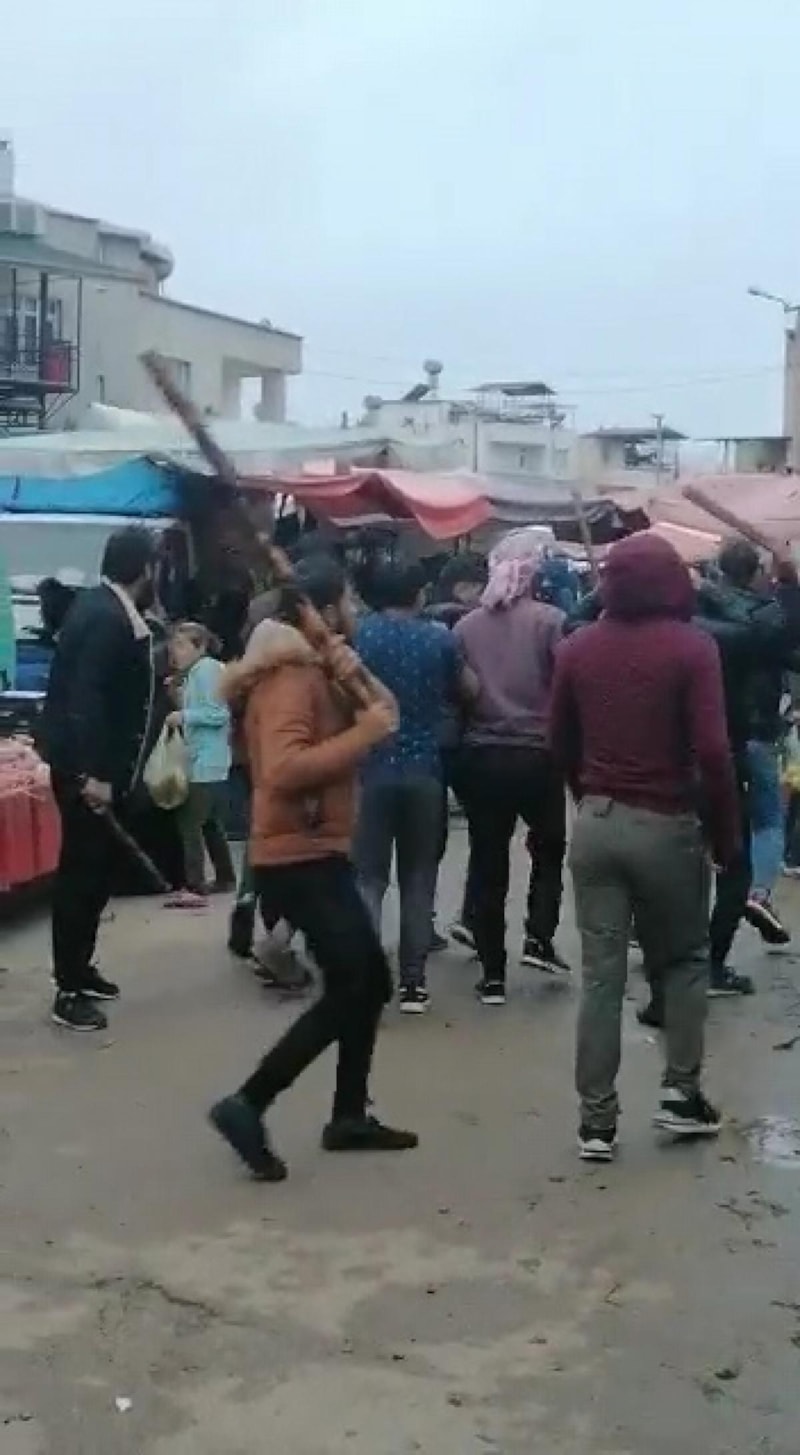 Adana Kozan'da bir pazar yerinde yabancı uyruklu iki grup arasında çıkan tartışma, sopalı kavgaya dönüştü.