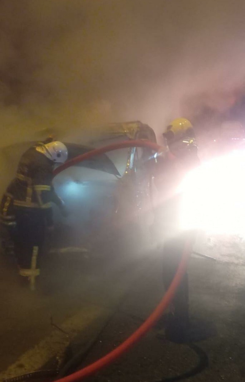 İhbar üzerine bölgeye sevk edilen itfaiye ekibi, aracı saran alevleri tazyikli su sıkarak söndürdü.