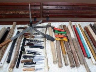 Adana'da toplu taşıma araçlarında yapılan aramalarda, çok sayıda kesici ve delici alet bulundu.