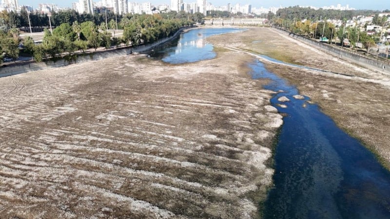 Kenti ikiye bölen nehre su verilmeyince çirkin bir görüntü oluştu. Bölge dron ile de görüntülendi.