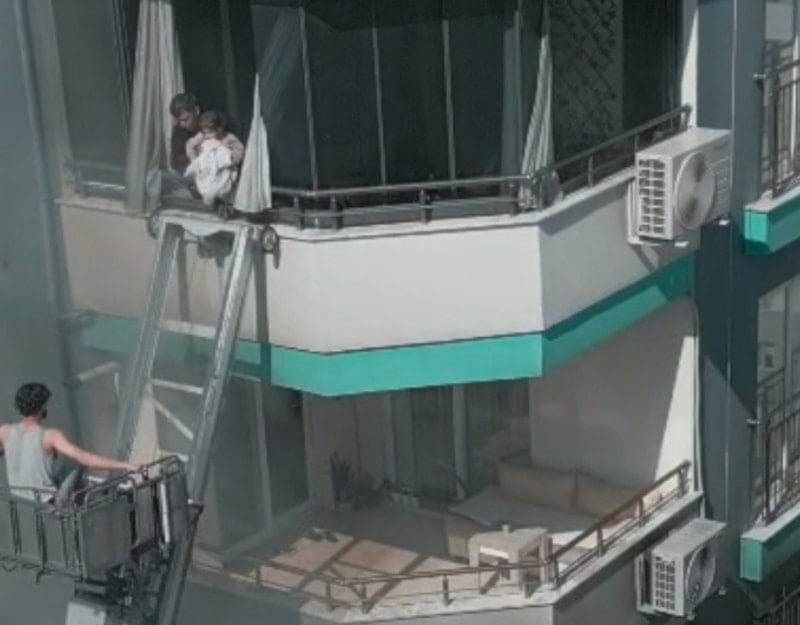 O sırada yan binaya eşya taşımak için getirilen yük asansörü, tehlikeli olduğu gerekçesiyle kimse tarafından kullanılmadı. Baba, kucağındaki bebeğiyle çaresizce beklemeye başladı.