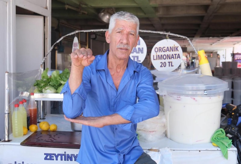 Osman Aslan'ın otogarda bulunan ayran tezgahına zabıta tarafından el konuldu..